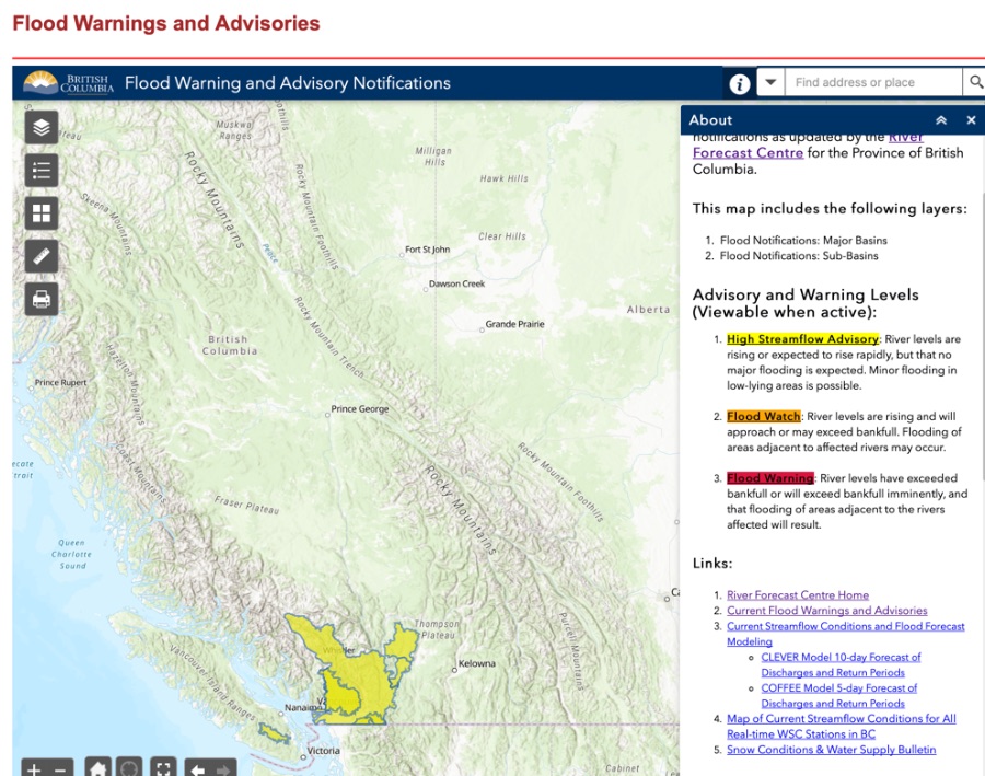Death toll in BC expected to rise after record flooding devastates province (Oct. 18, 2021) Read the Globe and Mail news story BC Flooding updates: Some evacuation orders lifted, many remain amid state of emergency (Nov. 18, 2021) Watch and read the CTVnews story First Nations leaders call on BC to declare indefinite state of emergency (Nov. 17, 2021) Watch and read the Globalnews story |